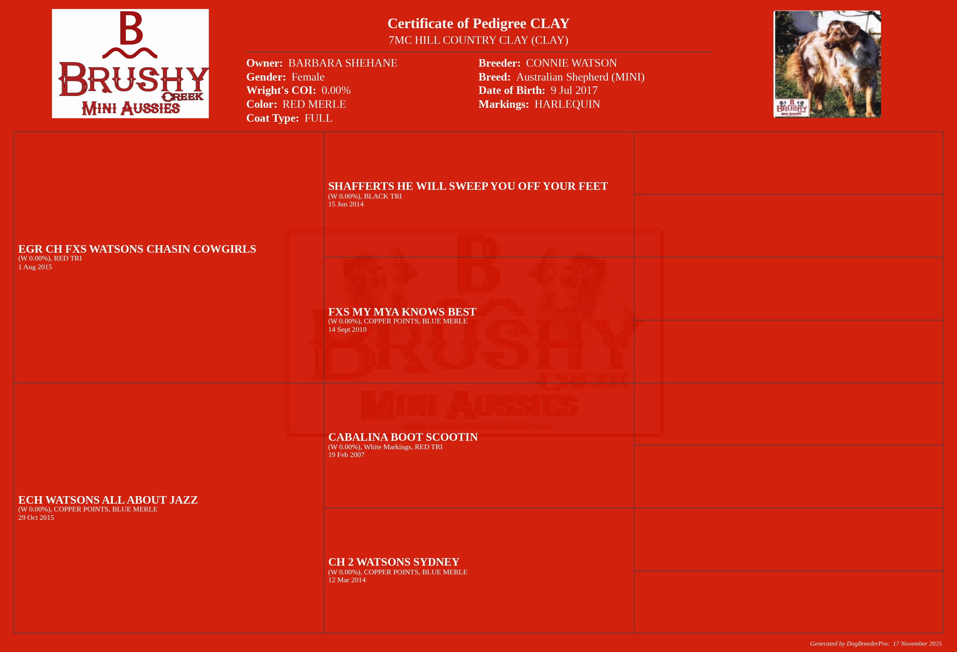 CLAY'S PEDIGREE AND INFO