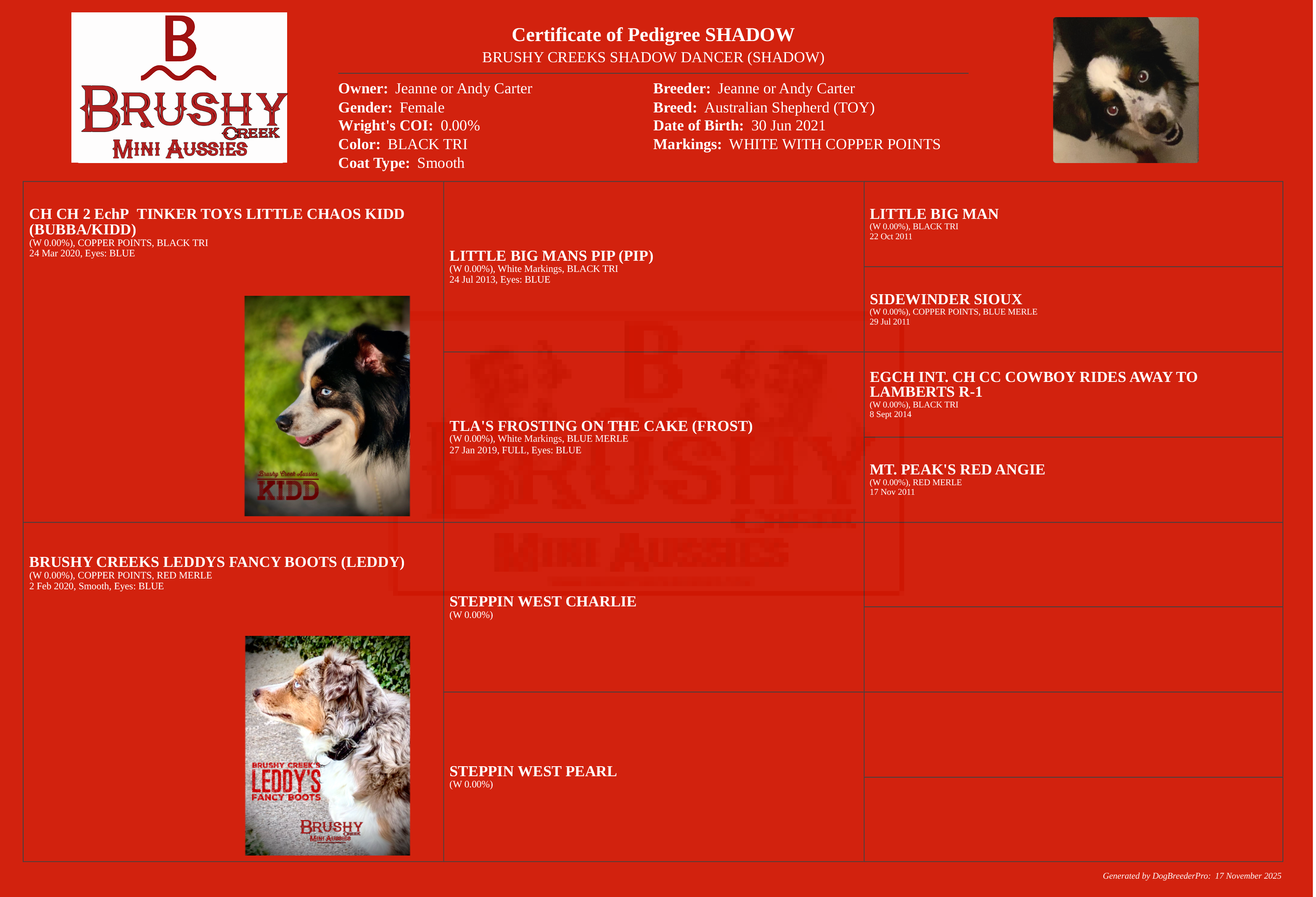 SHADOW'S PEDIGREE AND INFO
